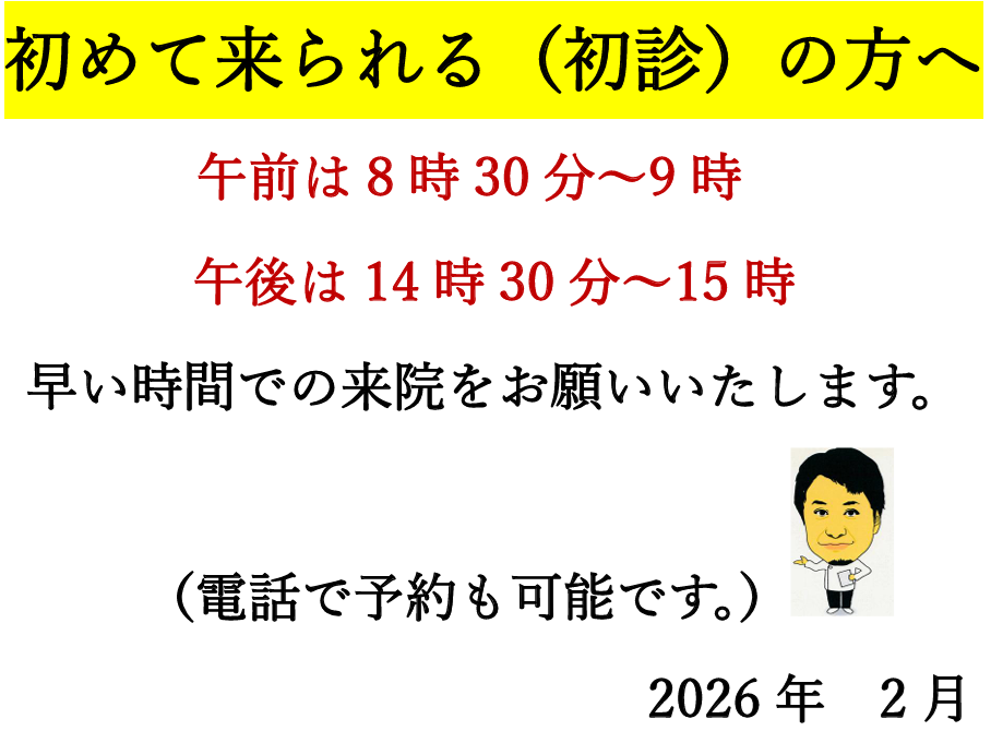 2025年2月10日より午後の診療が14時30分〜となります。(今まで15時から) ※平日午後の診療は予約も可能です。お電話、または御来院にてご予約お願いいたします。 |